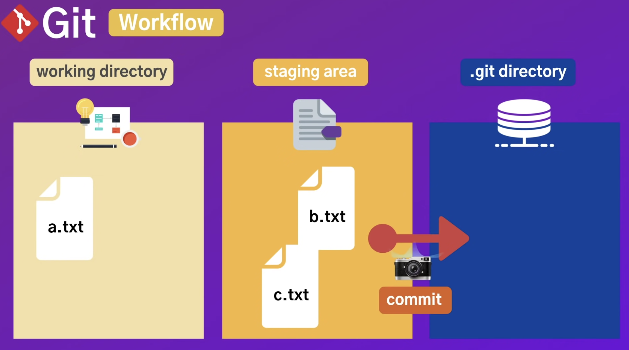 - 작업하고 있다가 어느정도 준비가 되었다면 staging area로 파일을 옮겨두고 commit이라는 명령어를 통해서 git 버전 히스토리에 저장할 수 있다.